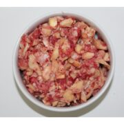 Složení 75 % celými kousky nasekaných kuřecích čtvrtek včetně kostí a 25 % játry.
