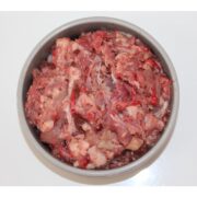 Menu hovězí maso, krůtí maso a maso lososa obsahuje 30% hovězí ořez, 20%, 10% losos a 30% krůtí skelet a 30% sezónní zelenina (mrkev, zelí). Hovězí maso obsahuje asi 23% bílkovin, 3-6% tuku, velké množství železa, vitamíny skupiny B a esenciální aminokyseliny. Je velice výživné, vhodné pro psy v rekonvalescenci a pro psy v zátěži. Krůtí maso obsahuje asi 20% bílkovin a velmi málo tuku asi 3%, je velmi lehce stravitelné a vhodné jako součást dietních jídelníčků, či pro úplně malá štěňata. Krůtí skelet je jedním z nejčastějších zdrojů kostí, které jsou nenahraditelné každodenně v jídelníčku vašeho pejska. Kosti obsahují minerální látky, především vápník, který je pro pejska velice dobře využitelný. Losos patří k tučným rybám. Obsahuje asi 20% bílkovin, asi 15% tuku. Je velmi dobře stravitelný, bohatý na minerály (fosfor, fluor, sodík, jód), vitamíny A,B,D a esenciální mastné kyseliny. Losos je vhodný pro psy v zátěži a pro psy, kteří potřebují přibrat. Maso lososa je tučné, proto má příznivý vliv na stav kůže a stav srsti vašeho pejska. Kombinace masa se zeleninou je vhodná pro pejsky, kteří odmítají samotnou zeleninu.